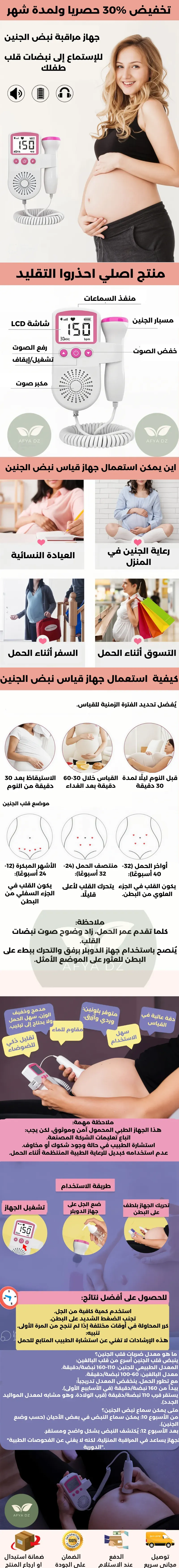 جهاز دوبلر لنبضات الجنين – رفيقك في رحلة الحمل عيشي تجربة فريدة من نوعها مع جهاز دوبلر لنبضات الجنين من ، المصمم خصيصًا للأمهات اللواتي يرغبن في متابعة نبض قلب الجنين من راحة منازلهن. بفضل التكنولوجيا المتقدمة، يمكنكِ سماع نبضات قلب طفلكِ بوضوح، مما يمنحكِ شعورًا بالاطمئنان والتواصل العاطفي العميق مع صغيرك قبل الولادة. يحتوي الجهاز على شاشة رقمية لعرض عدد دقات القلب بدقة، مع مكبر صوت مدمج وسماعة لتجربة استماع شخصية. سهل الاستخدام وخفيف الوزن، ويعمل بكفاءة دون الحاجة لأي تدريب طبي. مناسب للاستخدام ابتداءً من الأسبوع الـ12 من الحمل.